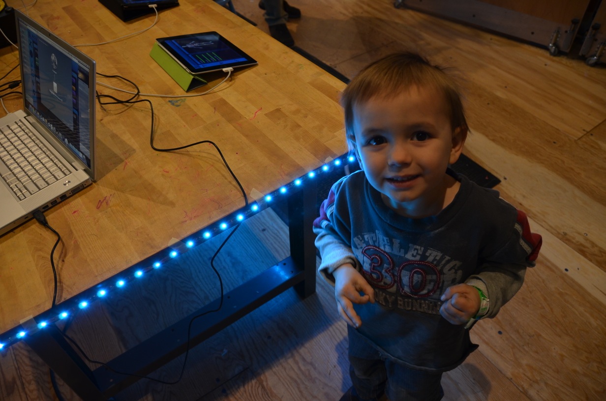 One of the great things about playtesting at the Makeshop was the wide variety of users we had access to. The controls were a hit among adults (parents, grandparents, and Makeshop staff alike), and it was a lot of fun watching mixed age groups use the controls together. It was also heart-warming to watch all the kids show their parents how things worked… kids are much better at this sort of thing. They aren’t afraid to just jump in and try things.