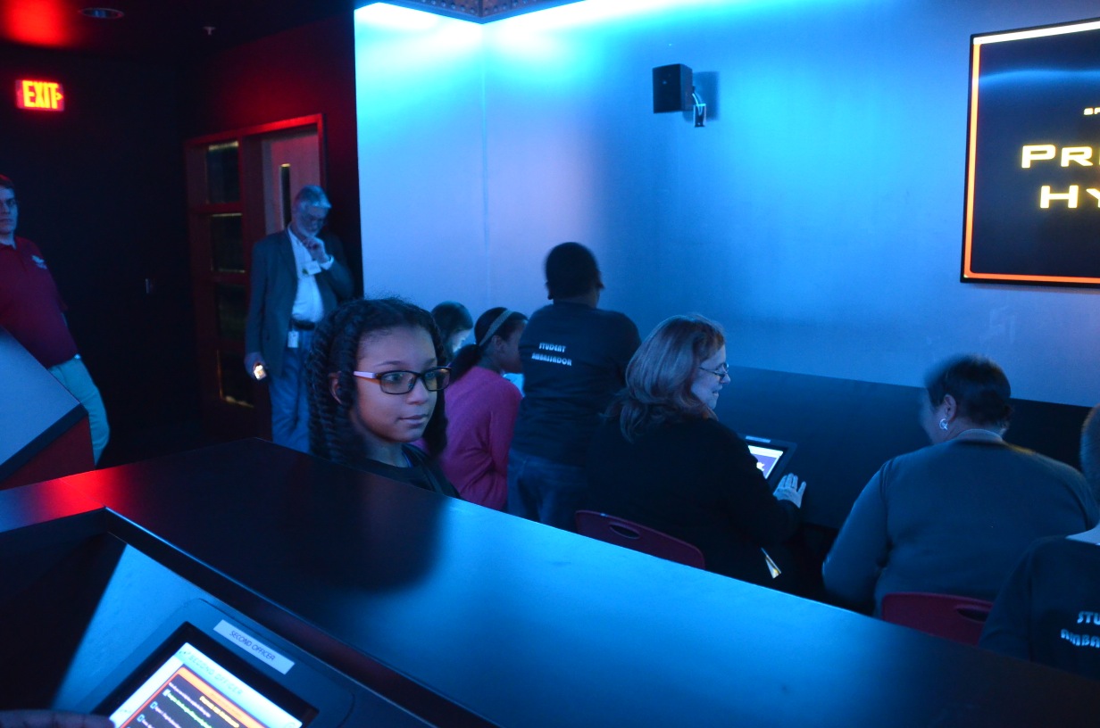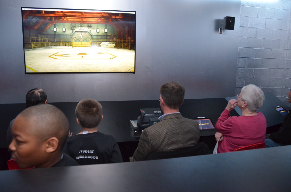 While waiting for their turn, each guest had the wonderful opportunity to chat with some of Penn Hills Elementary’s brightest young minds as they discussed their favorite missions and crew stations. They were buzzing with enthusiasm for the simulator and the adventures they had had inside. They described the gripping dangers they faced and how they used their wits to come out victorious.